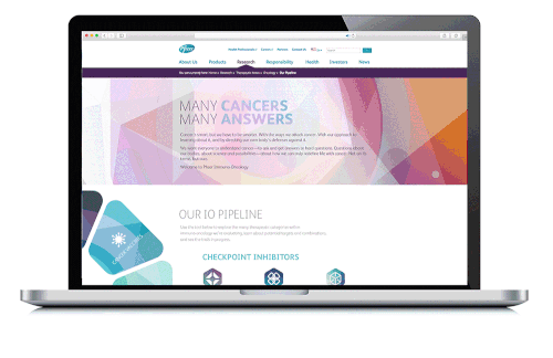 Pitch work for Pfizer immuno-oncology (IO), with a fun video and site design that made the IO pipeline something even a layperson would understand and want to explore.