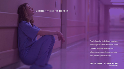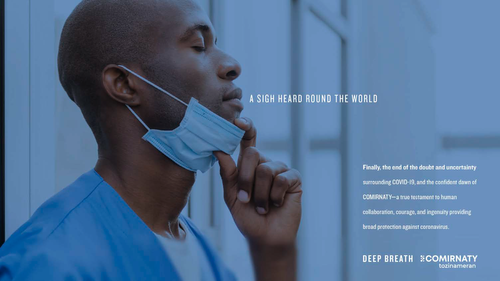 We became US and global AOR for the Pfizer vaccine early in the pandemic. During that hectic period, we mainly provided training, dosing, storing, and shipping materials supporting the various Emergency Use efforts around the world—but we were never short of launch ideas, a few of which are shown here.